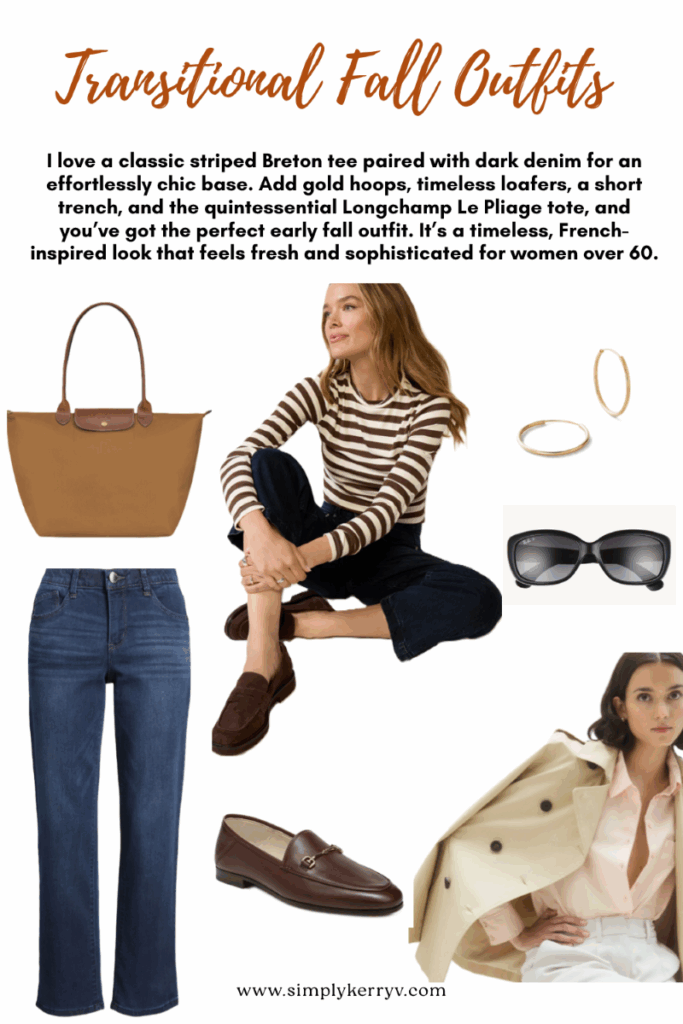 September 22, 2025Transitional French-Inspired Fall Style for Women Over 60 | Timeless & Chic Shopping Guide Longchamp Large Le Pliage Tote Long Sleeve Striped Tee Ana Luisa – Gold Slim Hoop Earrings Ray-Ban Jackie Ohh Sunglasses Short Trench Coat Sam Edelman Loraine Bit Loafer Wit & Wisdom Sawyer ‘Ab’Solution Straight Leg Jeans